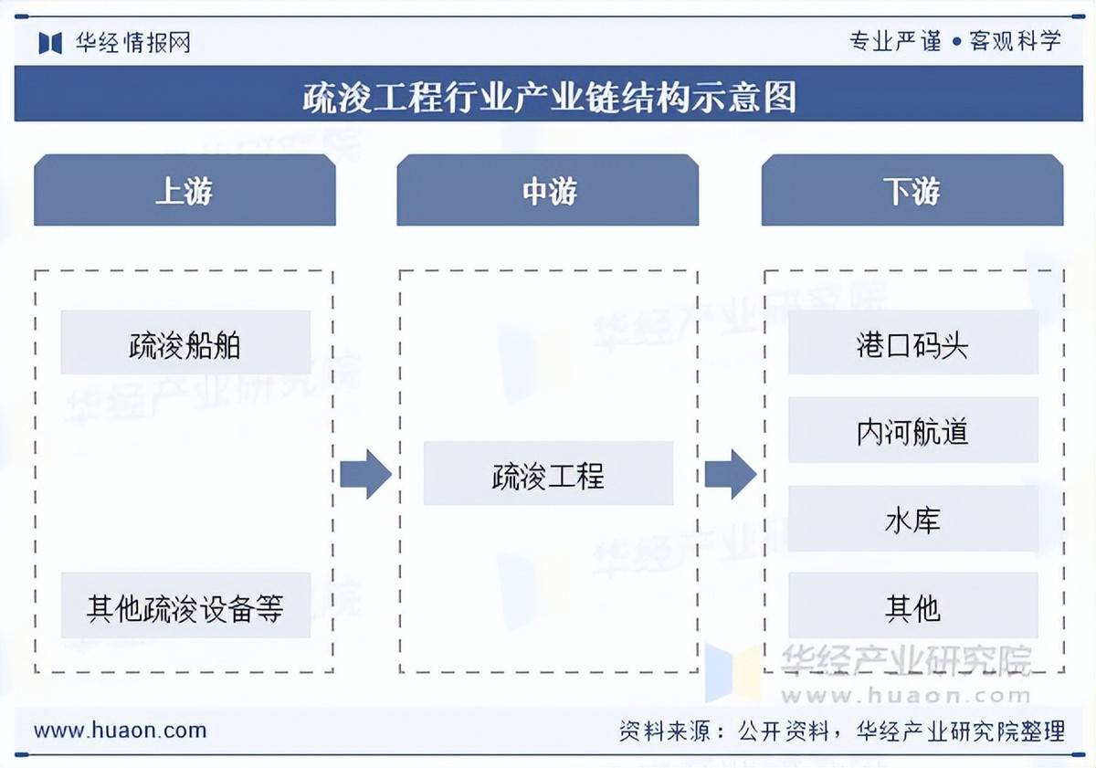 疏浚行业上逛包罗疏浚船舶制制、其他疏浚设备等相关行业。相关公用船舶及配备出厂价钱将会影响疏浚营业的运营成本。疏浚行业的下逛次要为口岸、航道等根本设备扶植行业。我国宏不雅经济成长程度以及沿海、河道、内陆湖泊等口岸扶植需求、水运输规模以及水分析成长分析整治等市场将会影响疏浚行业的成长势头以及营业规模。